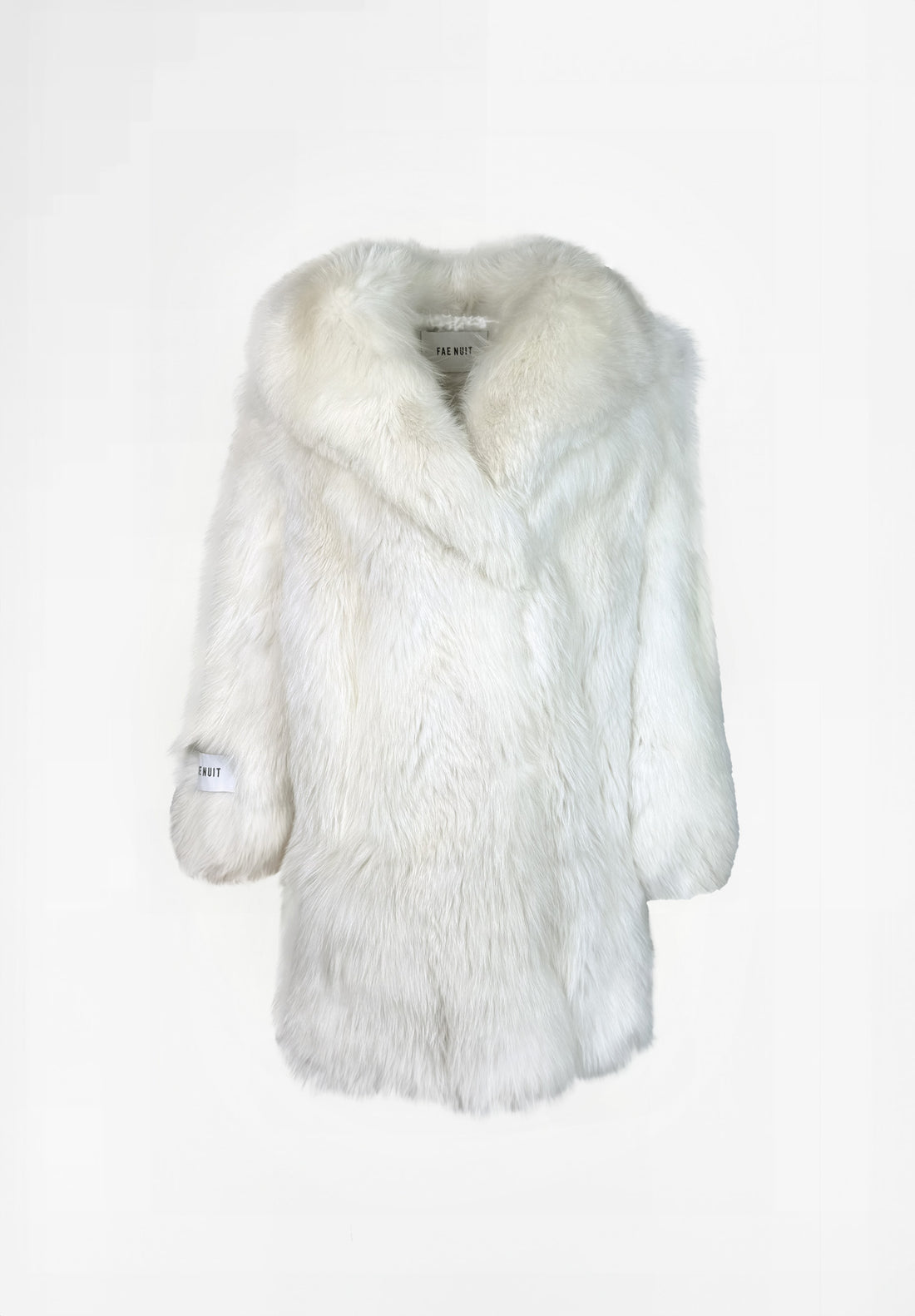 DESCRIPTION: Coat 019 is a fox fur coat in a neutral, soft white tone with natural...