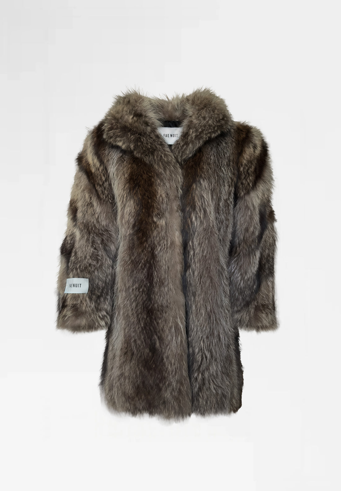 DESCRIPTION: Coat 405 is a stunning raccoon fur coat in a warm, natural hue with...