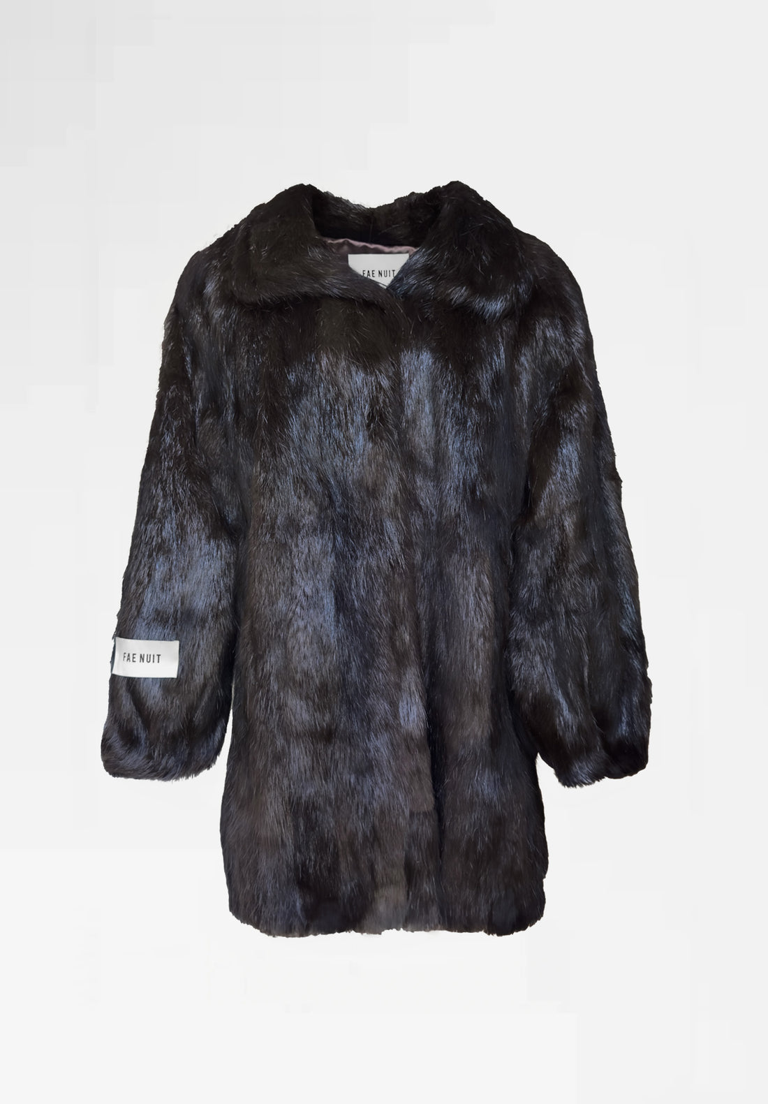 DESCRIPTION: The pre-owned black rabbit fur coat 502 is incredibly soft and elegant, with a...