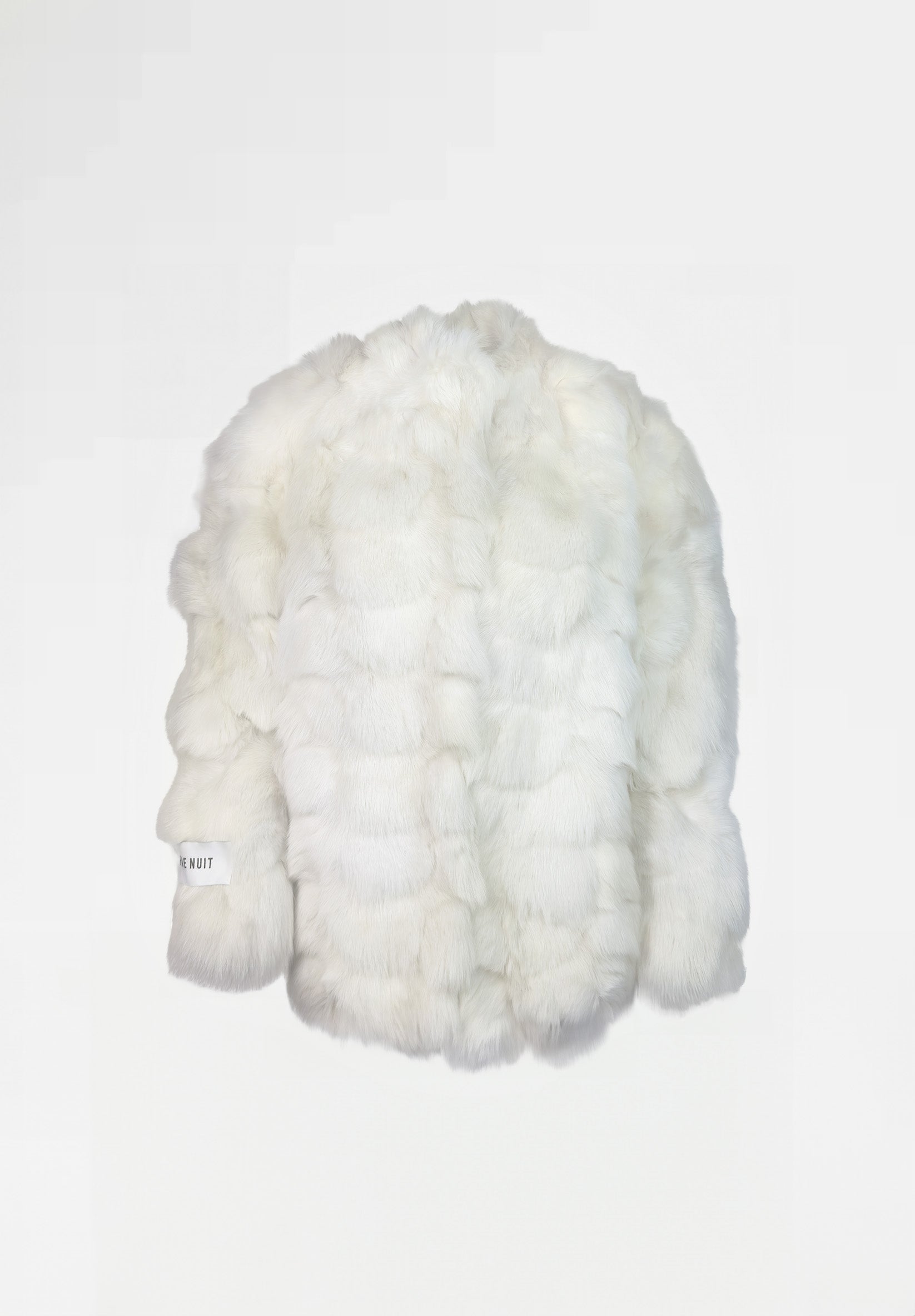 Coat 023 is a very unique fur coat, distinguished by its layered construction, creating a playful and refined visual effect. The design is shorter and slimmer in fit, crafted from a lighter, sleeker type of fur for an elegant, feminine silhouette. Featuring small batwing-style sleeves and no pockets, the layered pattern adds subtle texture and movement. The coat comes in a warm, natural tone with a slightly deeper hue at the roots, giving it depth and character.