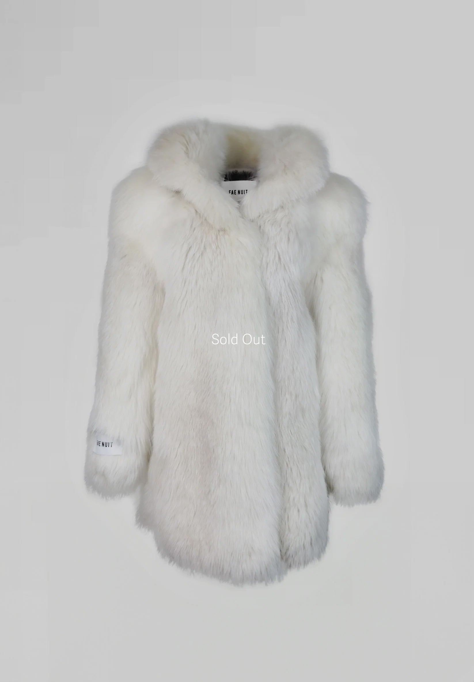 Coat 031 is a stunning light fox fur coat, in a warm milk-white tone with a subtle salmon-tinted hue running through the fur. The coat features a slightly longer silhouette and a more tailored fit with long sleeves and a smaller, refined collar. Crafted from soft fox fur, it exudes an exquisite pre-owned piece of quality.