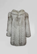 Coat 214 is a stunning beige fox fur coat, featuring rich, full fur with darker accents that add depth and dimension. The front cut reveals a beautiful pattern, making this piece truly unique. With its luxurious texture and timeless design, it’s both elegant and effortlessly chic, perfect for colder days.