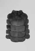 Coat 322 is a striking fox fur coat crafted in horizontal panels, showcasing a unique gray-brown color that sets it apart. This slightly fitted design flatters the silhouette, while the beautifully shaped short collar adds a touch of refinement. Soft and effortlessly elegant, this pre-owned piece is perfect for those seeking timeless style with a modern edge.